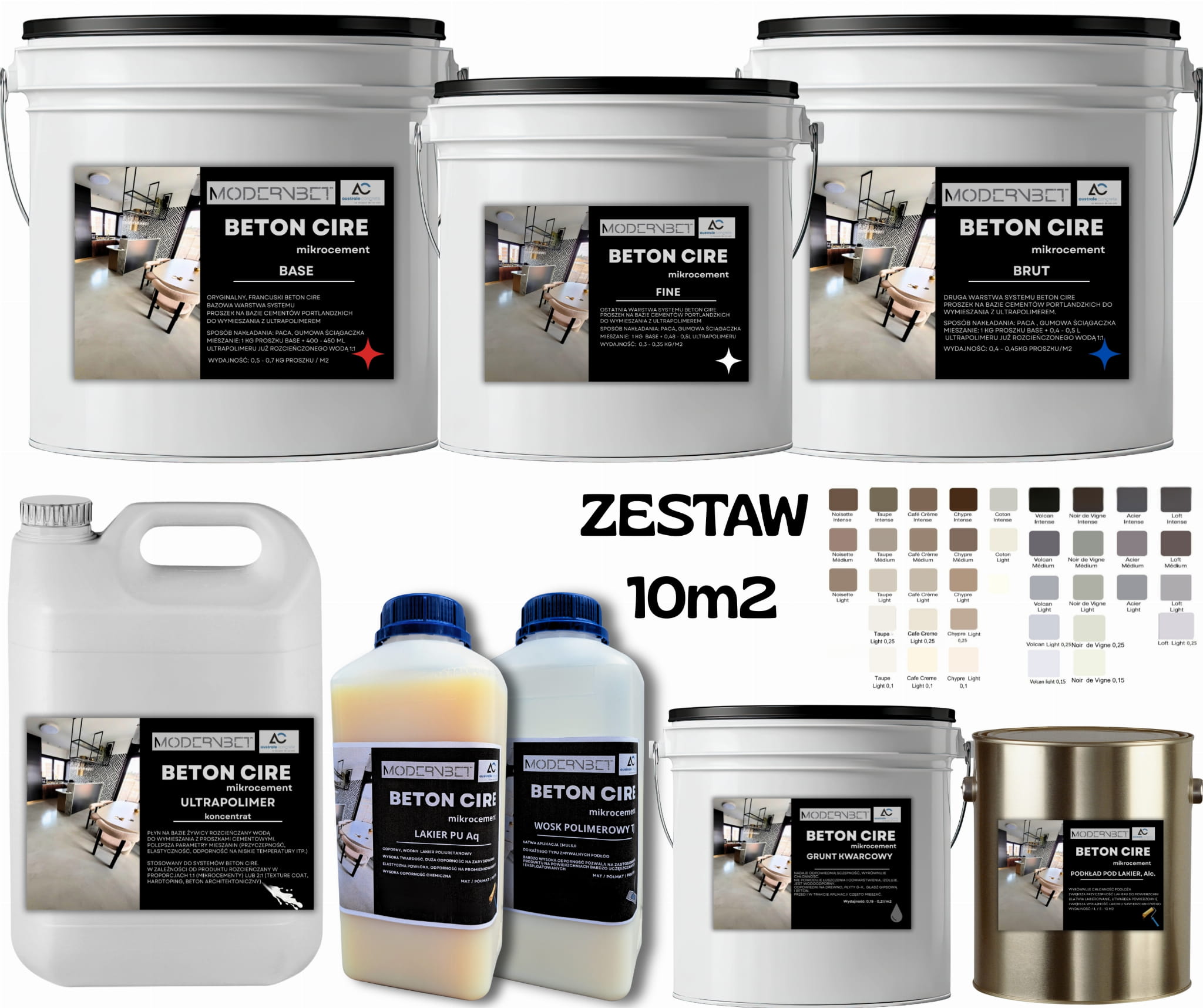 Zestaw Premium - mikrocement Beton cire / mikrobeton, na 10m2. Podłogi, ściany, meble, schody, łazienki i strefy mokre.