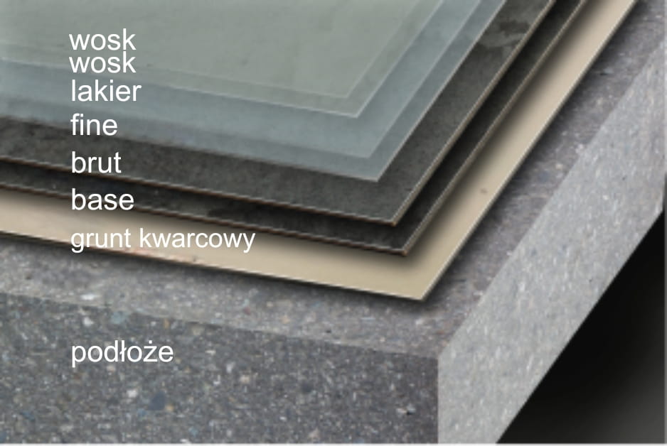 - przeszlifowane i odkurzone podłoże zagruntować gruntem kwarcowym przy użyciu wałka z mikrofibry. Grunt ten wyrównuje chłonność podłoża, wzmacnia je i tworzy bardzo mocną warstwę sczepną